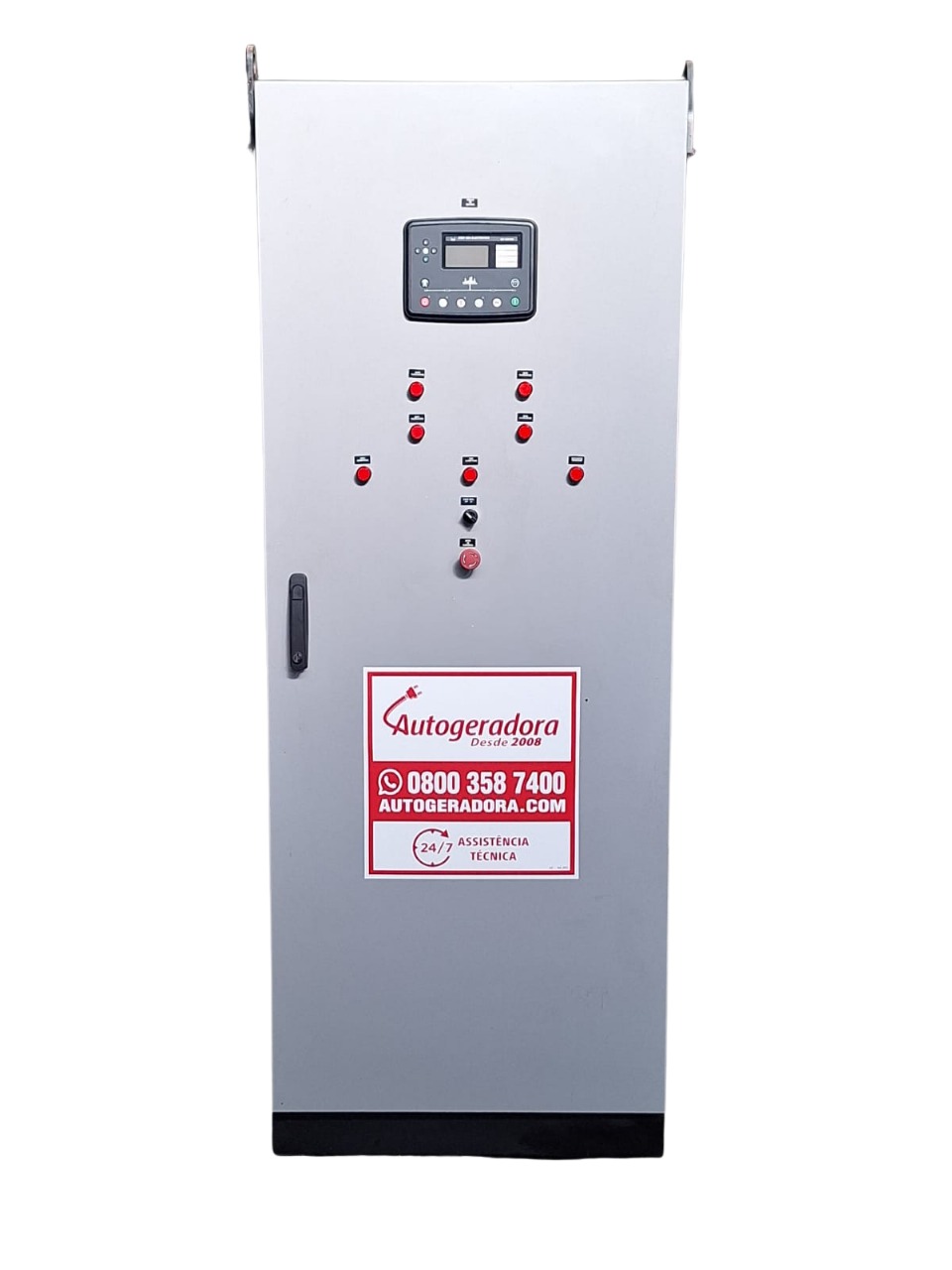 Dispositivo que automatiza a transferência entre gerador e concessionária, garantindo proteção e controle do gerador em períodos programáveis.